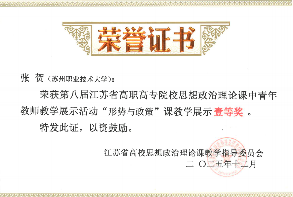 我校教师荣获江苏省高职高专思想政治理论课青年教师教学展示活动“形势与政策”课一等奖