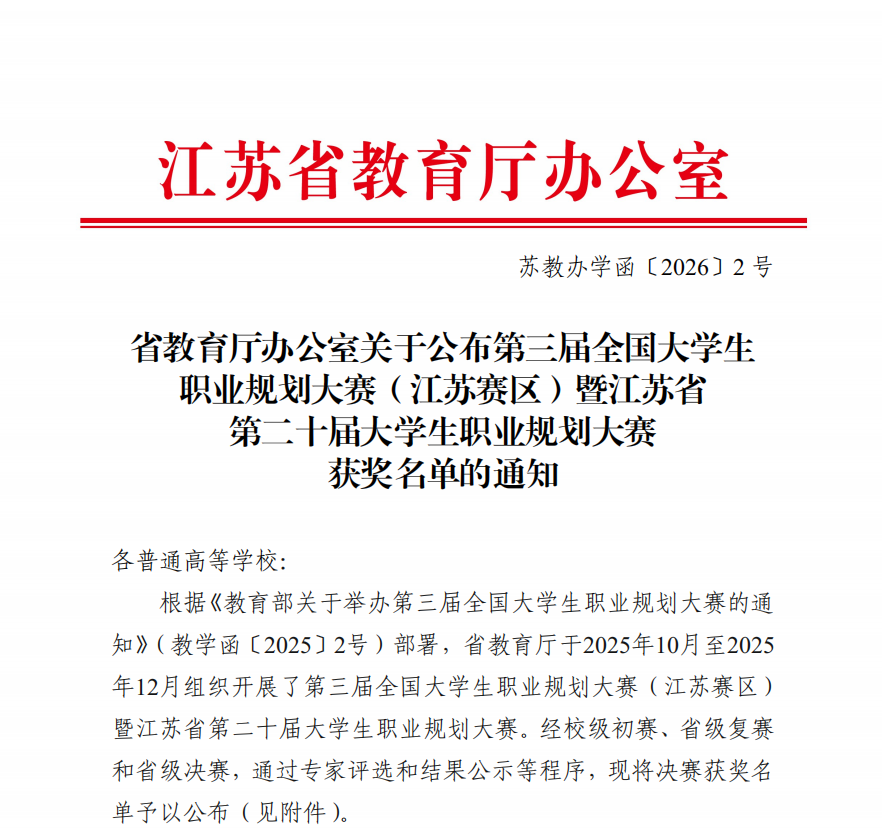 近日,中共江苏省委机关刊《群众》(思想理论版,2026年第3期)刊发我校党委书记温贻芳署名文章,题目为《做强本科层次职业教育实现人才培养能级跃升》。