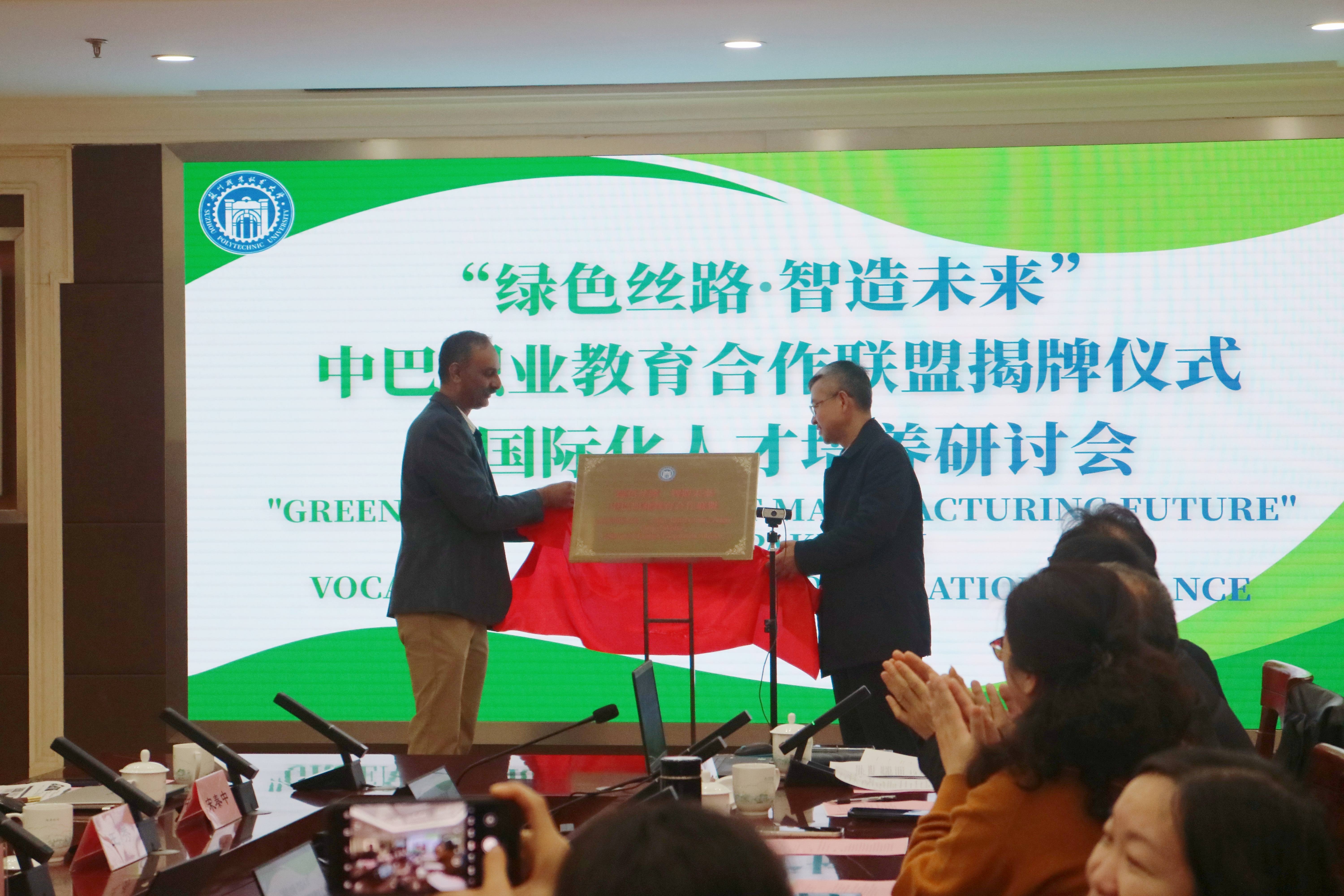 成立仪式上,孙学文强调,联盟成立是深化产教融合与国际化人才培养的重要举措,旨在打造“中高本贯通”的国际化产教融合平台,为中巴产业发展输送“精技术、善沟通”的高素质技能人才。巴布尔对联盟成立表示热烈祝贺,展望了中巴双方在技能人才培养领域的广阔合作前景。纳迪姆·哈立德通过线上方式致辞,肯定联盟对促进两国教育文化交流、深化产业合作的重要意义。孙学文与巴布尔共同为“绿色丝路・智造未来”中巴职业教育合作联盟揭牌,并为成员单位颁发证书,标志着联盟各项合作进入实质性推进阶段。