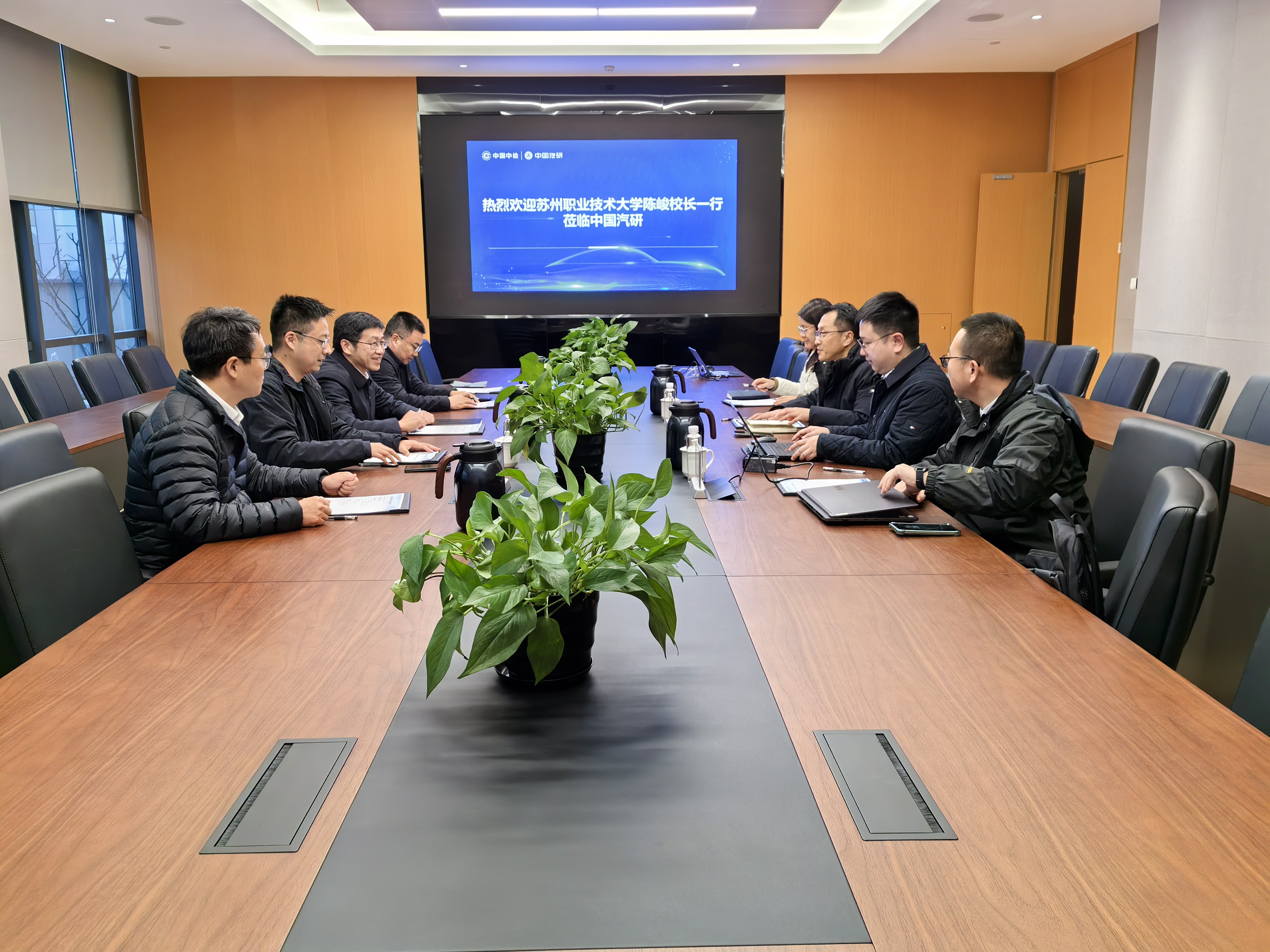 座谈会上,张强介绍了公司发展现状及未来建设规划。唐宇介绍了中国汽研在苏州的主要组织架构、业务板块以及在新能源智能网联汽车测试领域的技术人才需求。陈峻介绍了学校发展基本情况,重点介绍了学校扎根苏州、服务地方的办学特色和发展优势。交流中,学校教师回顾了双方此前在实训基地及课程建设等方面的前期合作进展与阶段性成果;校企双方就未来在新能源汽车技术和智能网联汽车技术两个专业学生的岗位实习、专业建设、教师实践、学生就业等方面可开展的合作进行了深入的交流,并对实习岗位适配、课程内容更新、校企资源整合等进行了探讨,为后续合作的顺利推进筑牢基础。