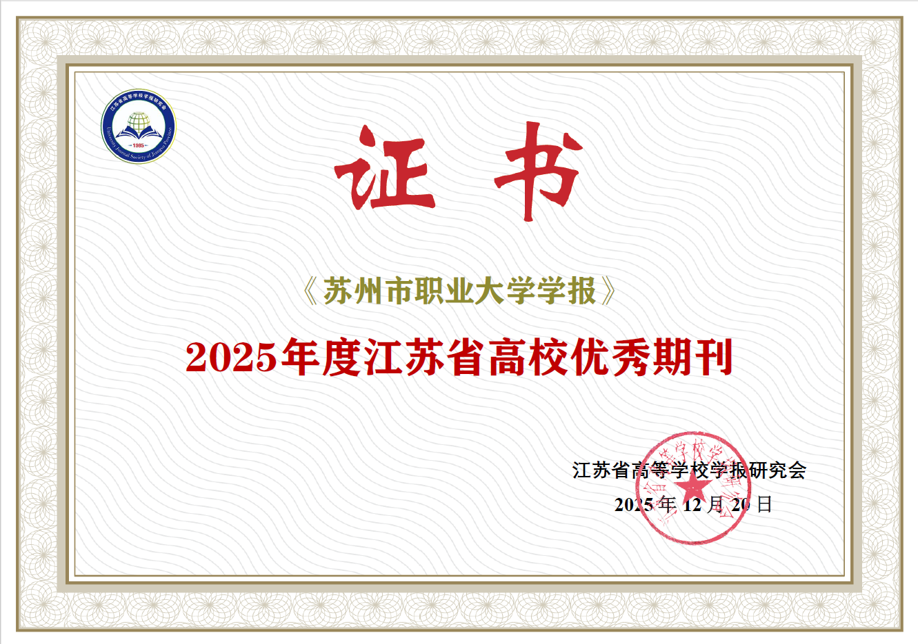 我校《苏州市职业大学学报》获评2025年度江苏省高校“优秀期刊”