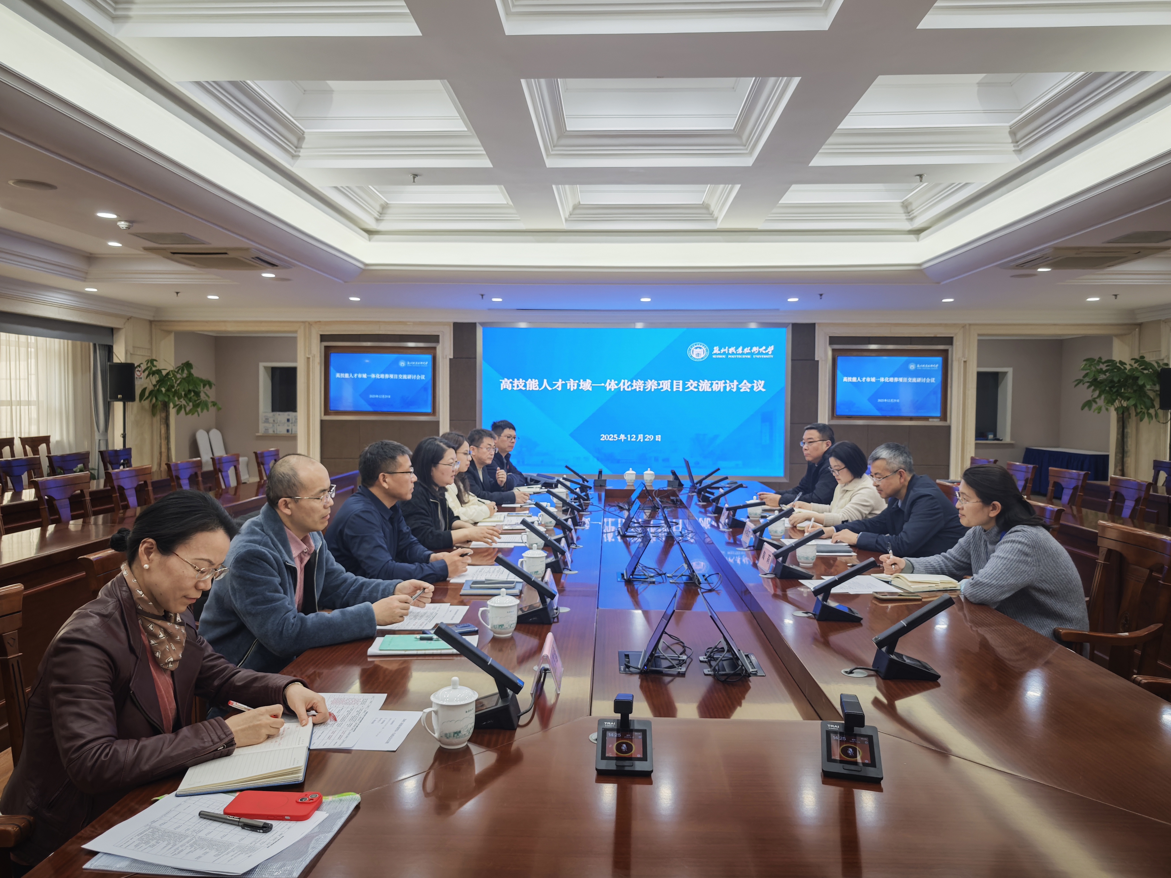 孙学文代表学校对园区教育局及职业院校代表表示欢迎。他指出,深入市域板块,推动高技能人才一体化培养,是顺应产业升级、增强市域人才竞争力的重要举措。我校期待与园区开展多层次、实质性的合作。
