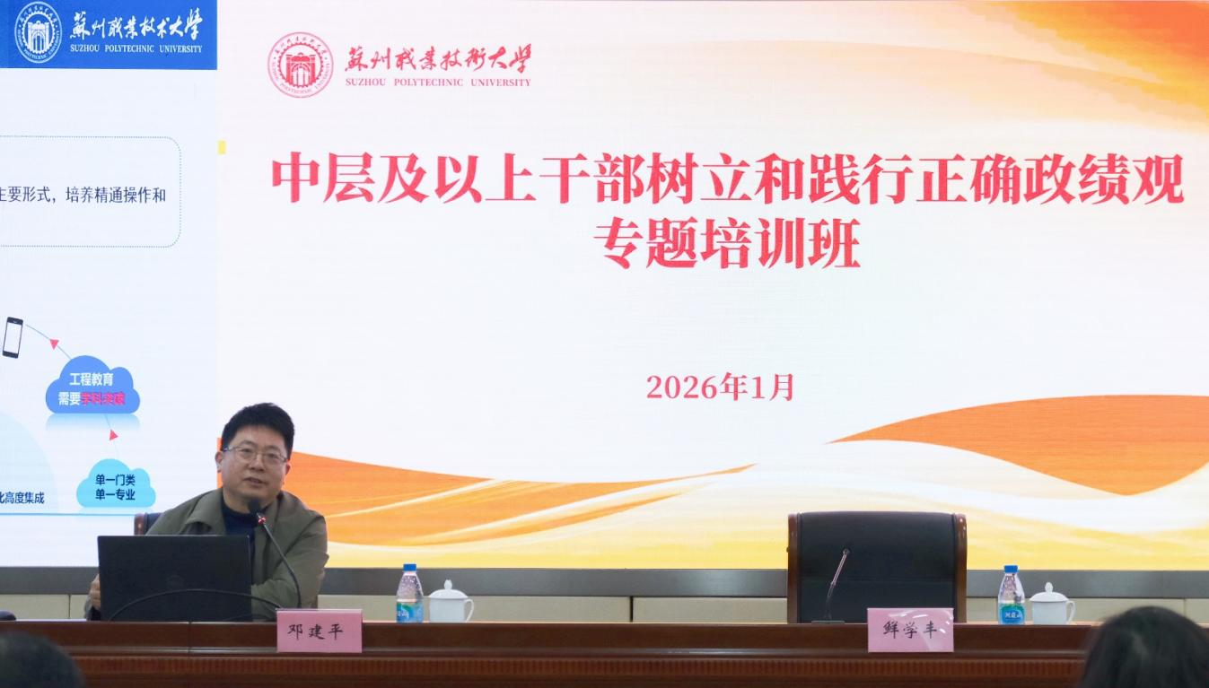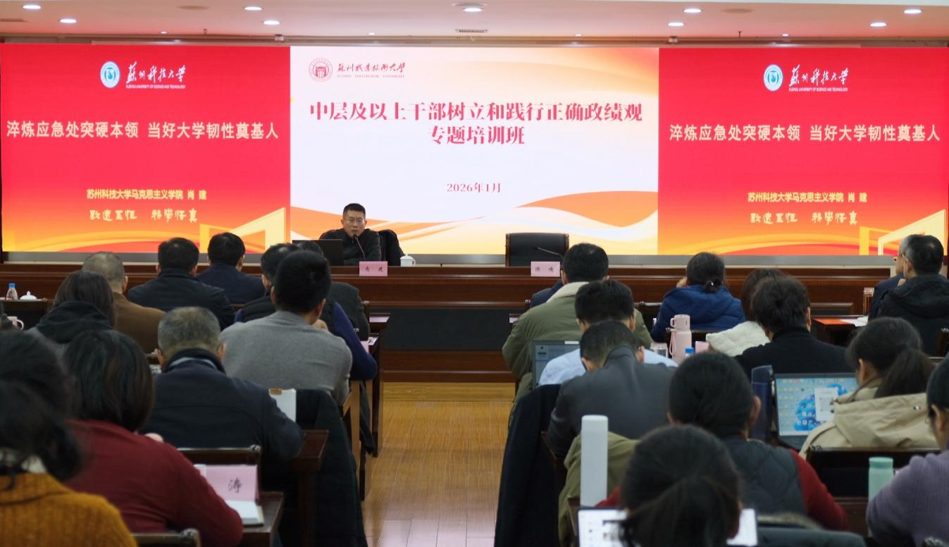 本次培训内容丰富、形式多样。培训首日,校党委副书记、校长陈峻主持开班式。苏州市委党校教授王涛作开班首讲,深入阐释新时代党的建设总要求和组织路线,系统分析苏州发展的战略定位与时代使命,引导干部思考高校在服务苏州现代化新实践中的责任担当;校纪委组织了高校监督体系建设专题学习;苏州科技大学副教授肖建讲解了领导干部危机应对策略。全体学员还集中观看了国家“十五五”规划相关专题视频。