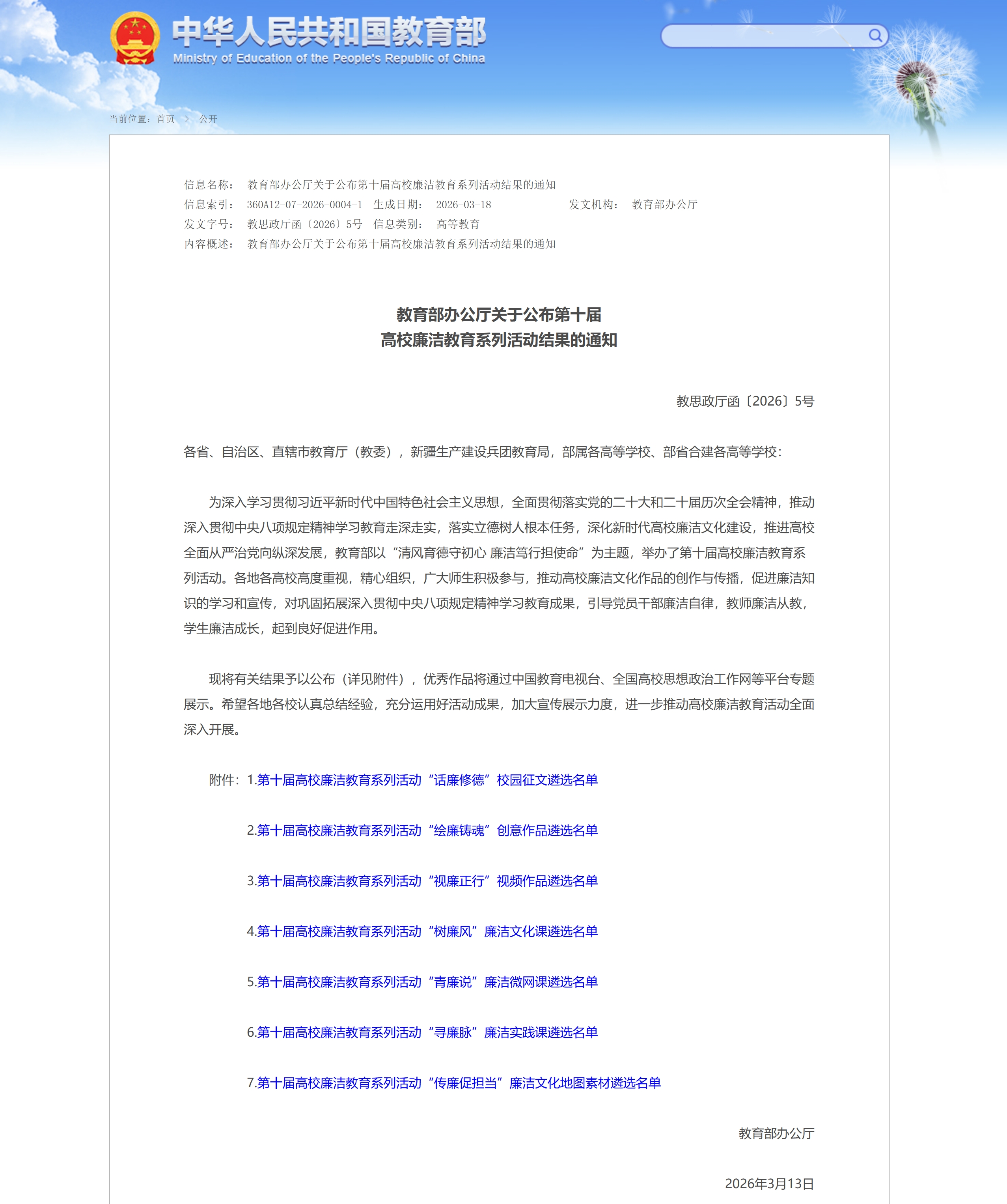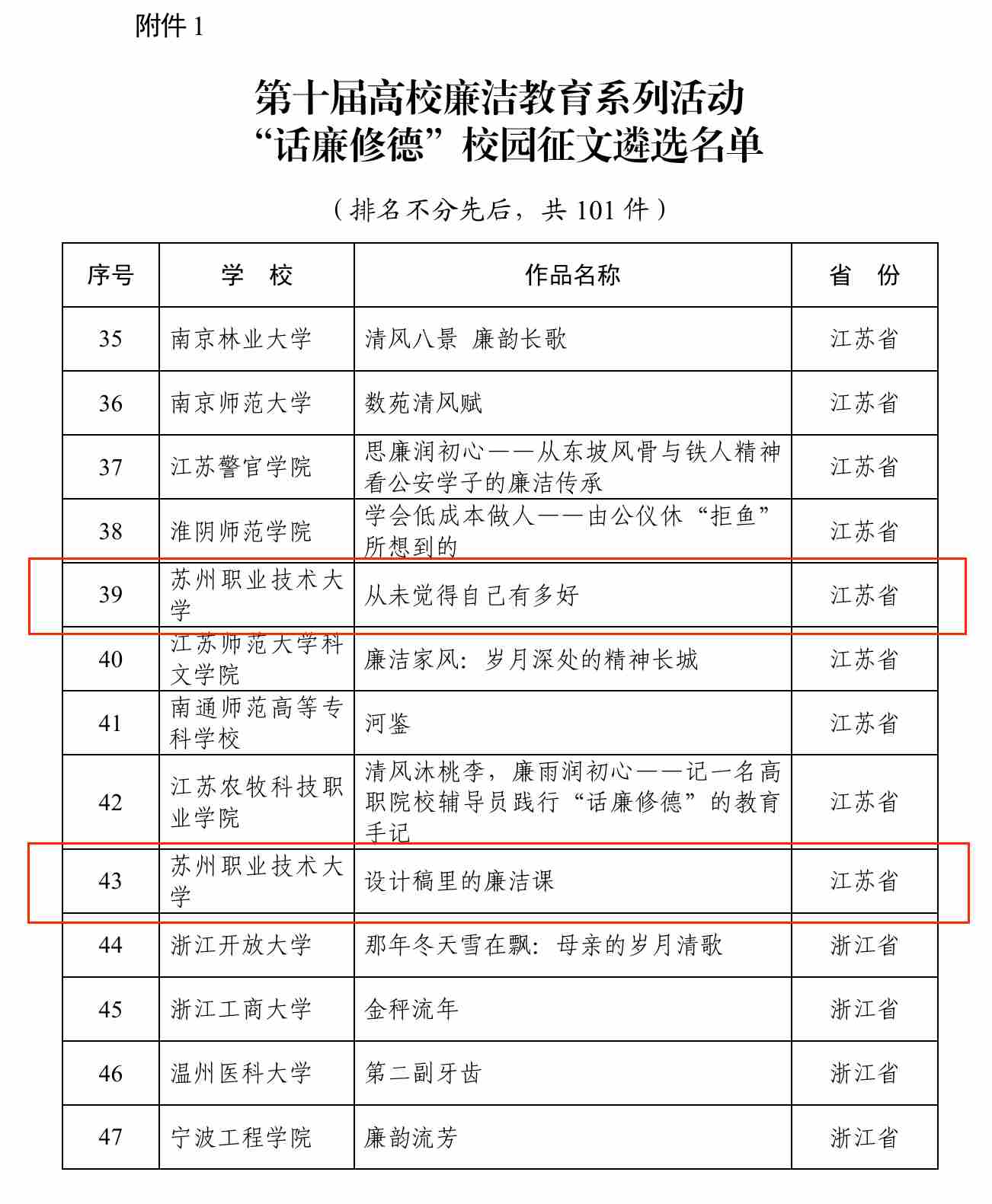 近日,教育部办公厅公布了第十届全国高校廉洁教育系列活动评选结果。我校共有5项成果入选,入选成果总数位列全国职业院校第一,充分展现了我校廉洁文化建设的扎实成效和鲜明特色。