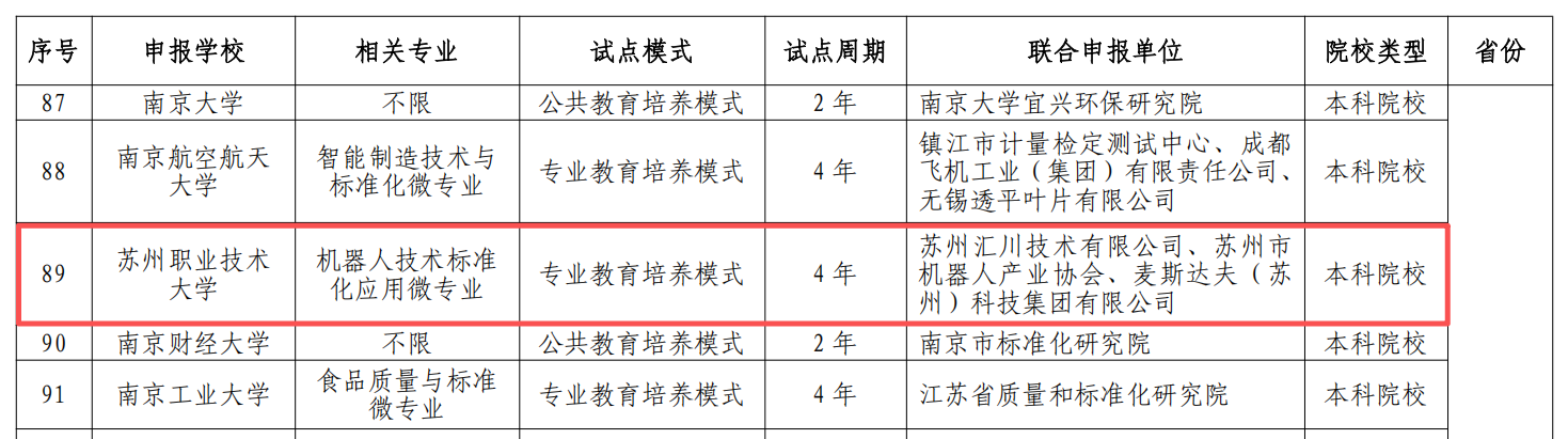 本次试点工作旨在推动高等教育与标准化教育深度融合,着力培养兼具专业技术能力与标准化素养的复合型人才,积极服务国家标准化战略和产业高质量发展。经专家组严格评审,基于我校在机器人与智能制造领域扎实的产教融合基础,以及在“专业+标准化”融合育人方面的创新实践,学校申报的“机器人技术标准化应用微专业”项目成功入选首批试点单位。
