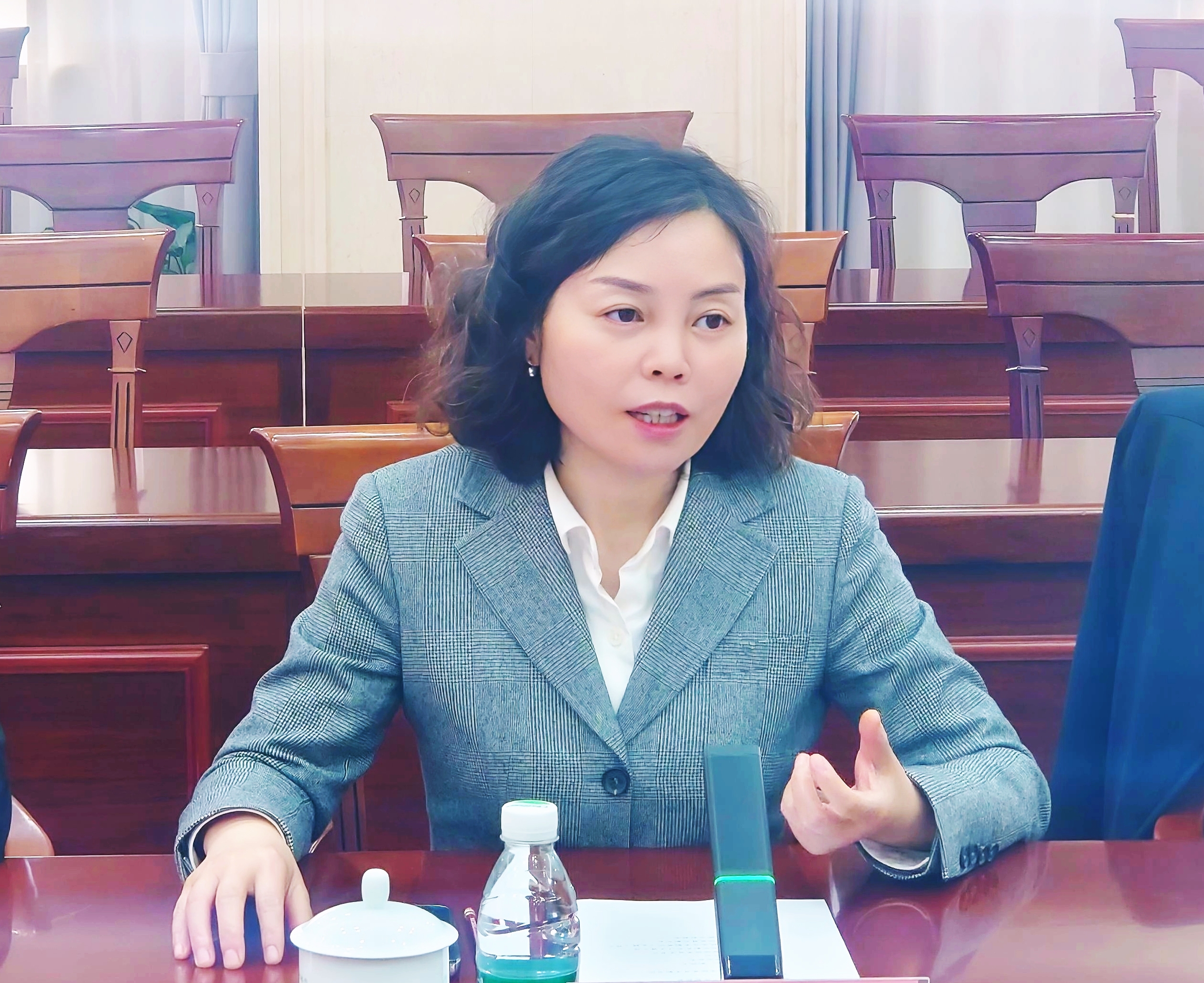 座谈会上,温贻芳代表学校对柴瑞帅一行表示热烈欢迎。张军介绍了我校的办学历史、发展现状以及在产教融合、平台建设、人才培养等方面的实践与成效。他表示,河南工业贸易职业学院形成了以粮食类专业为龙头、工贸协调发展的专业群,希望以此次交流为契机,深化两校在相关领域的合作。