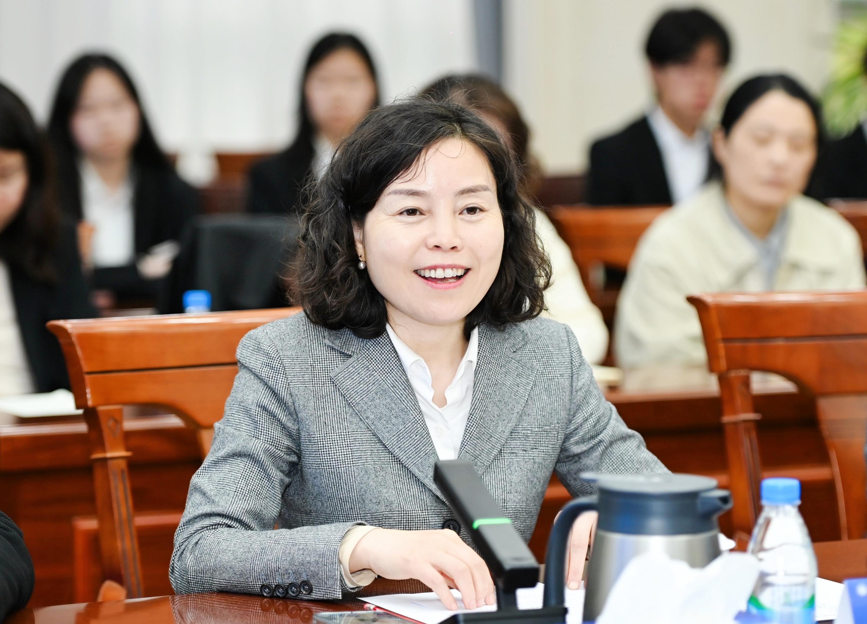 温贻芳首先致欢迎辞。她表示,苏州港AI单据智服中心是学校深化产教融合、服务地方经济发展的重要举措,是落实市委、市政府“三服务”专项行动的务实成果。学校将充分发挥教育资源优势,助力苏州港区物流企业智能化升级。