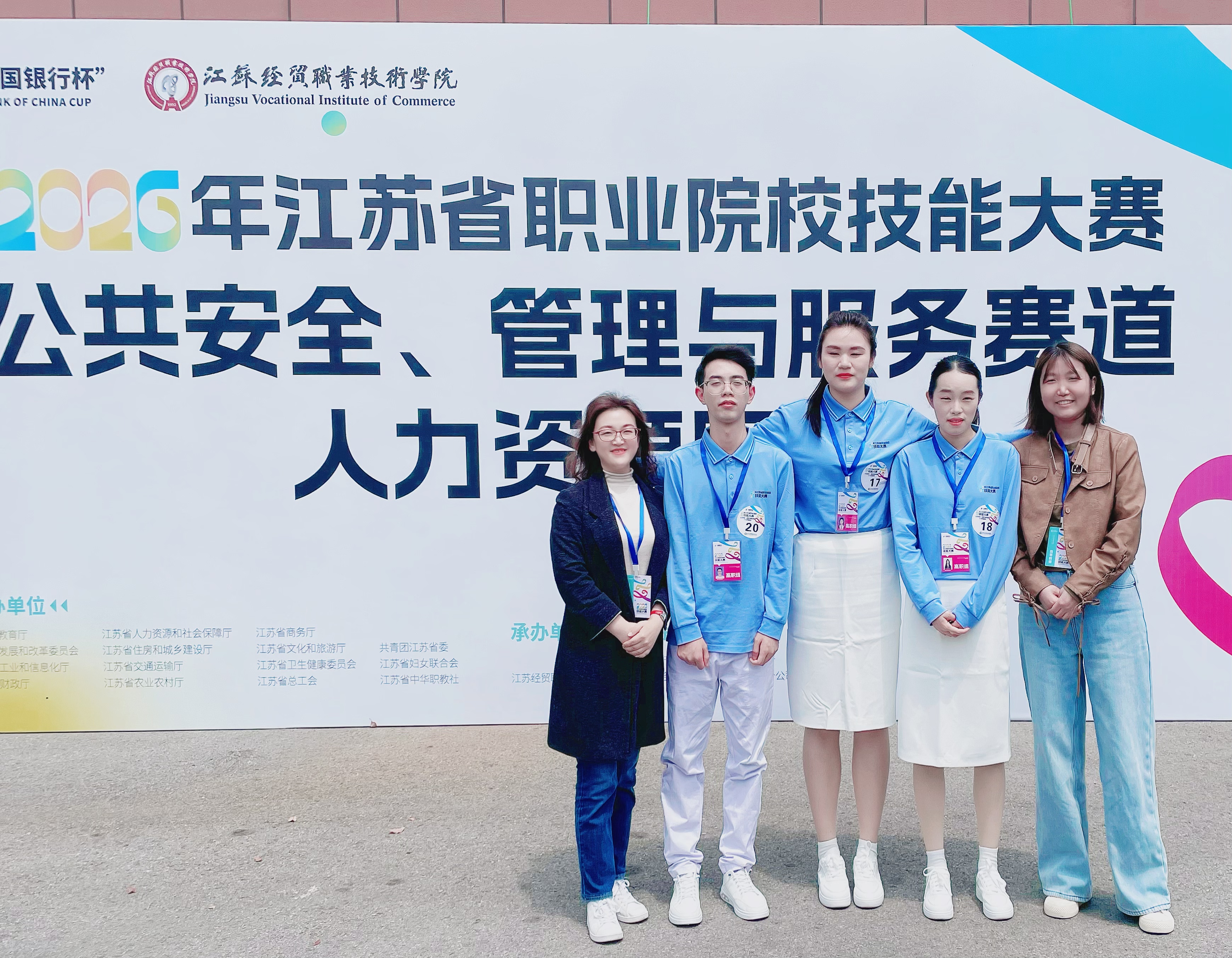 4月17日至19日,2026年江苏省职业院校技能大赛公共安全、管理与服务赛道人力资源服务项目比赛在江苏经贸职业技术学院举行。本次大赛由江苏省教育厅主办,共有12支参赛队伍同台竞技。我校2024级人力资源管理班蔡莹莹、刘佳颖、高宇航三位同学在戈凌云、周子番老师指导下,最终以省第三名的成绩荣获二等奖,创下本赛项历史最好成绩。